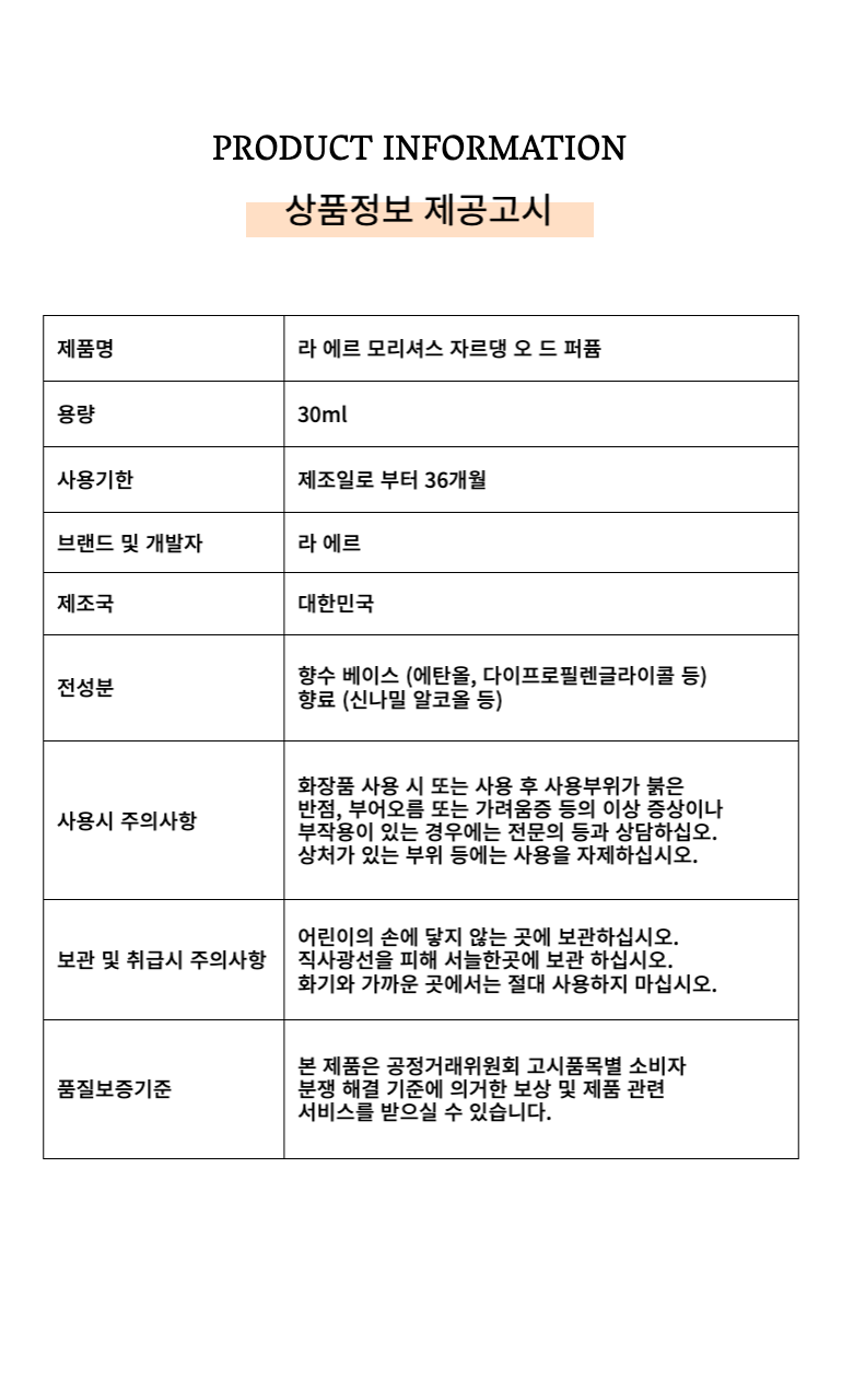 ¶ó ¿¡¸£ ¸ð¸®¼Å½º ÀÚ¸£´ó ¿À µå ÆÛǾ 30ml |